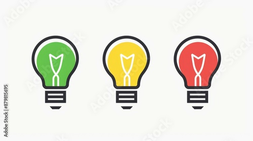 Green, yellow, red light bulbs icon set. Simple, flat design light bulbs in green, yellow, and red. Perfect for ideas, solutions, and choices.