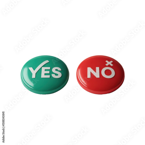 Green yes button with checkmark and red no button with cross isolated on transparent background