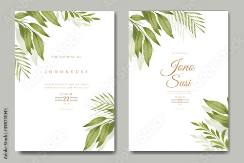 Greenery leaves wedding invitation card set