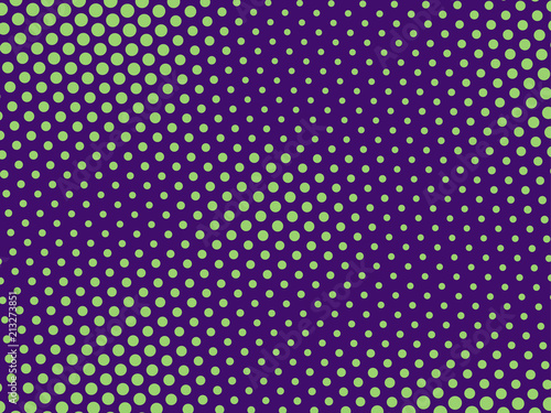 Green-purple halftone background. Digital gradient. Abstract backdrop with circles, point, dots
