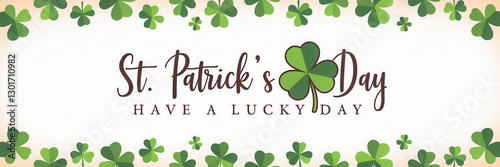 Greeting card for Happy St. Patrick's Day with green clover on white background
