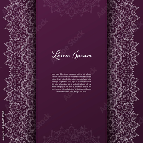Greeting card or invitation template with filigree lace frame. Design for romantic events