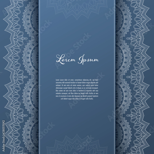 Greeting card or invitation template with filigree lace frame. Design for romantic events