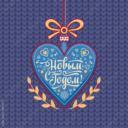 Greeting card. Russian Cyrillic font. Translate in English - happy New Year!