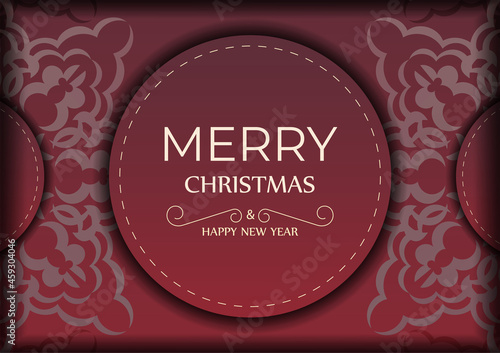 Greeting card template Merry Christmas and Happy New Year Red color with vintage pattern
