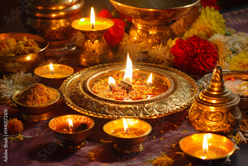 Greeting card with holiday composition for happy Akshaya Tritiya