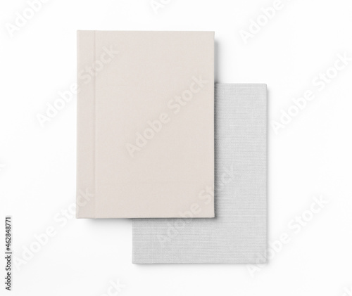 Grey hardcover books, isolated on white background. Top view