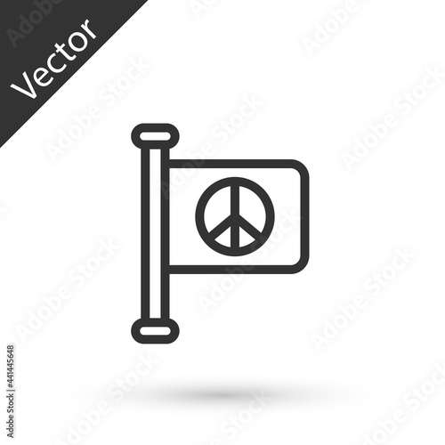 Grey line Flag peace icon isolated on white background. Hippie symbol of peace. Vector