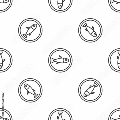Grey line Served fish on a plate icon isolated seamless pattern on white background. Vector.
