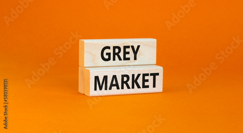 Grey market symbol. Concept words Grey market on wooden block. Beautiful orange table orange background. Business grey market concept. Copy space.