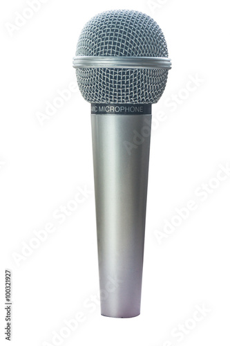 Grey microphone on a white background