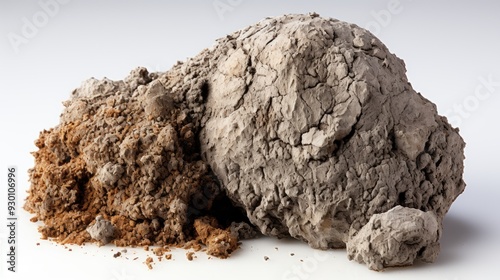 Grey modelling clay ball, lump isolated on white copy space