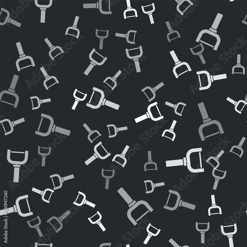 Grey Peeler icon isolated seamless pattern on black background. Knife for cleaning of vegetables. Kitchen item, appliance. Vector