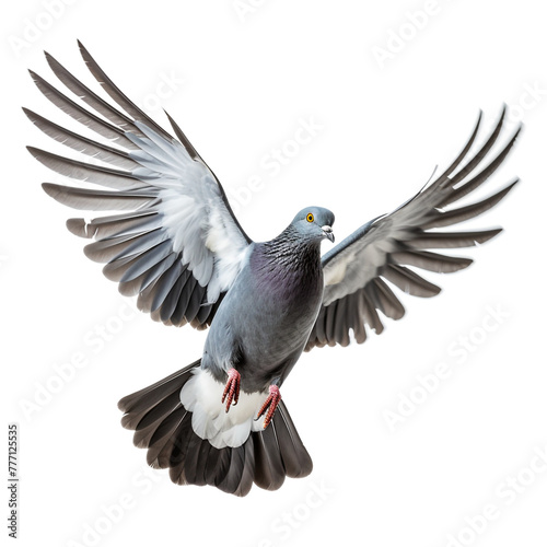 Grey pigeon on flight isolated on white background сreated with Generative Ai