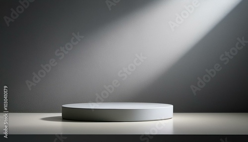 Grey shades abstract stage or podium with place for your product presentation on blank wall background with backlit. 3D rendering, mocku