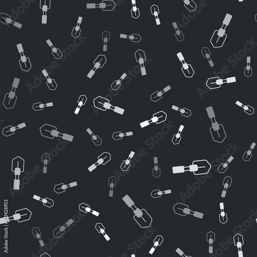 Grey Shovel icon isolated seamless pattern on black background. Gardening tool. Tool for horticulture, agriculture, farming. Vector