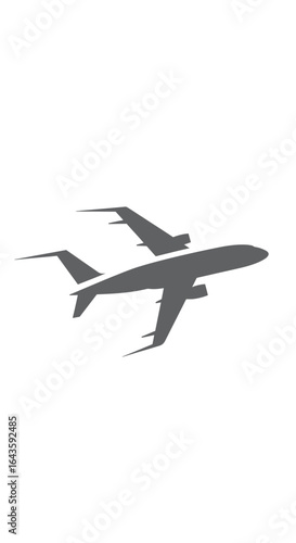 Grey silhouette of two passenger airplanes flying together, an icon for air transport, travel, and aviation.