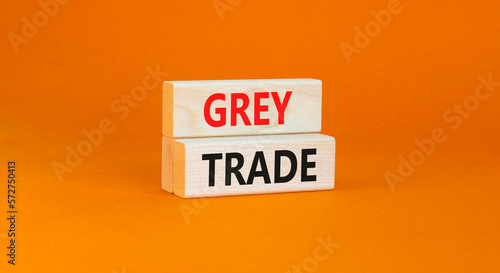 Grey trade symbol. Concept words Grey trade on wooden block. Beautiful orange table orange background. Business grey trade concept. Copy space.