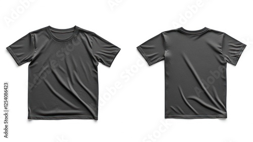 Grey t-shirt mockup, front and back, isolated, white background, apparel design