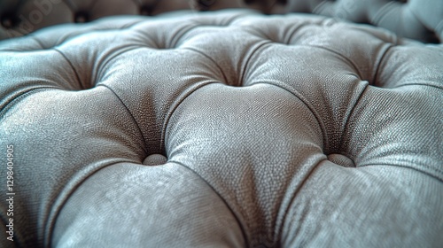 Grey tufted upholstery detail, close-up, interior, soft background, furniture texture