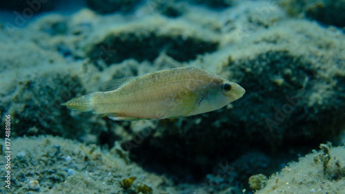 Grey wrasse (Symphodus cinereus) undersea, Aegean Sea, Greece, Halkidiki, Pirgos beach