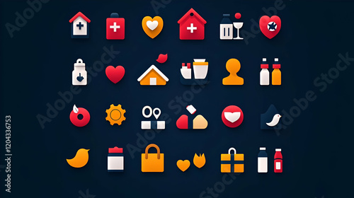 Grid of Charity Icons, a vibrant arrangement showcasing diverse symbols of giving, generosity, and community support, emphasizing collective kindness.