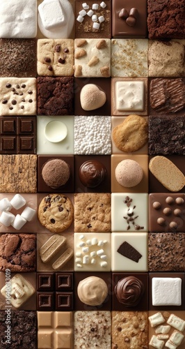 Grid of diverse sweet treats in shades of brown and white