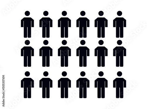 Grid of Simple Person Icons Representing a Group of People, black silhouette icons of people, person icons, people icons, human icons, silhouette icons, group of people, population icon, demographics