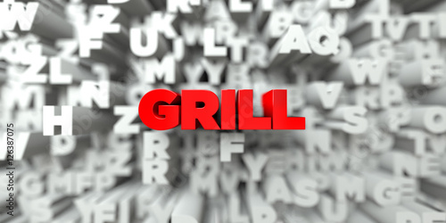 GRILL - Red text on typography background - 3D rendered royalty free stock image. This image can be used for an online website banner ad or a print postcard.
