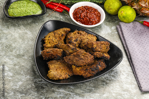 Grilled beef barbecue with spises