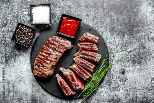 grilled beef steak on stone background