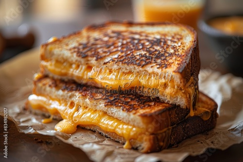 Grilled Cheese Sandwich - Golden, crispy grilled cheese sandwich cut in half.