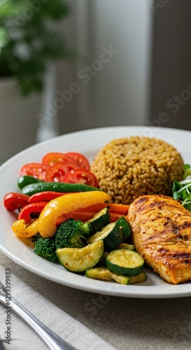 Grilled Chicken Breast with Quinoa, Veggies, and Salad