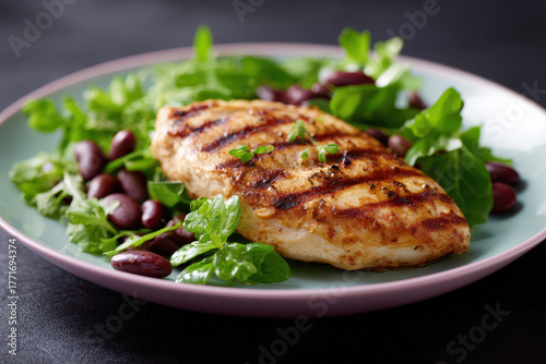 Grilled chicken lean meal mixed greens kidney bean healthy
