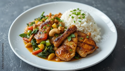Grilled Chicken with Rice and Vegetable Stir-Fry
