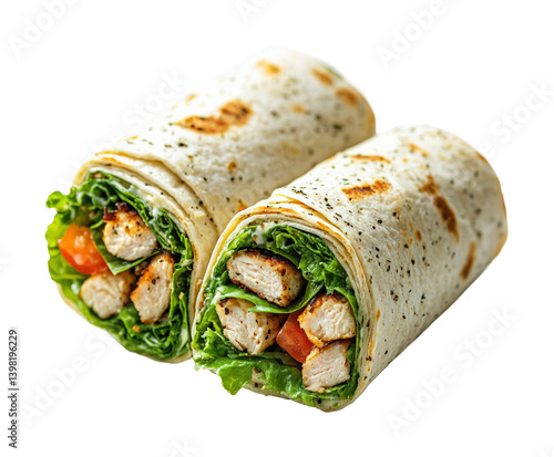 Grilled chicken wrap preparation kitchen food isolated on transparent background, png
