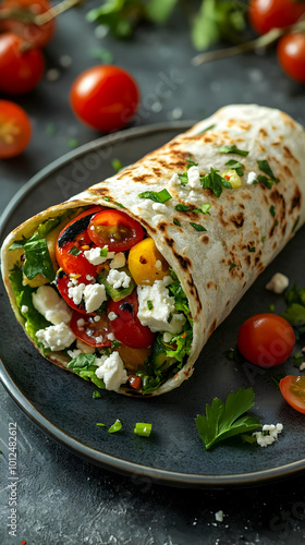 Grilled Feta Cheese, Cherry Tomato & Lettuce Veggie Wrap Photo