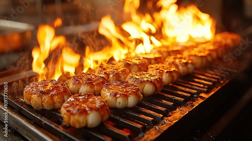 Grilled Garlic Bulbs on BBQ Flame Roasted Closeup Food Photography