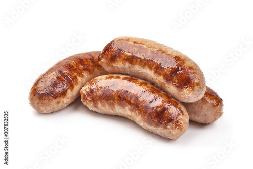 Grilled German Pork Sausages, munich sausage, isolated on white background
