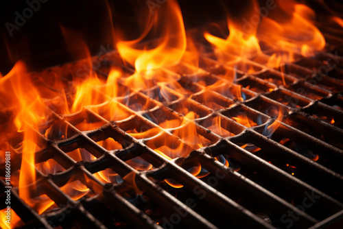 Grilled grid with charcoal is burning