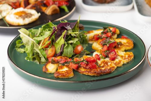 Grilled Halloumi cheese served with a green salad