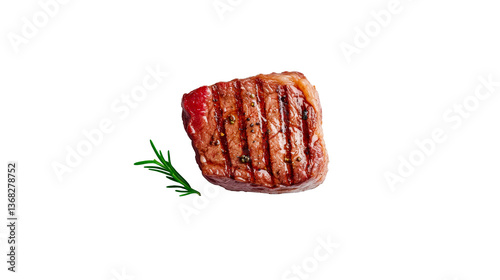 Grilled juicy steak with rosemary sprig, tenderloin, cut out transparent