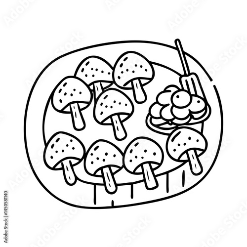 grilled mushrooms icon, grilled mushrooms line art - simple line art of grilled mushrooms, perfect for grilled mushrooms logos and icons