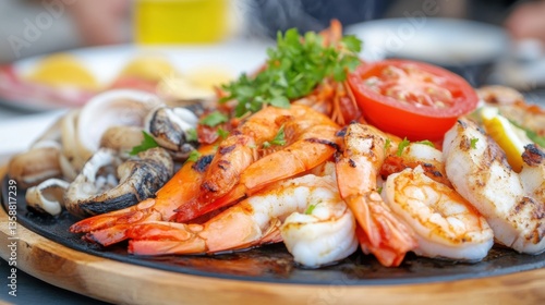 Grilled Seafood Platter with Shrimp, Clams, and Fresh Vegetables