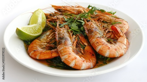 Grilled Shrimp with Lime and Herbs on a White Plate