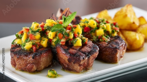 Grilled Steak with Fresh Mango Salsa and Roasted Potatoes