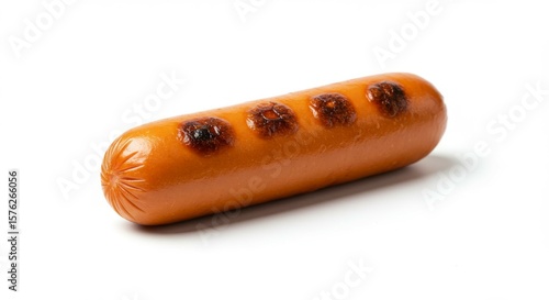 Grilling Hot Dog on White Background, Cooked Sausage Closeup