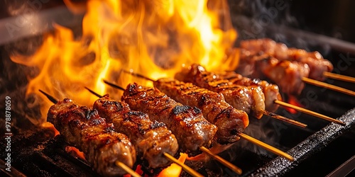 Grilling Perfection: Savory Skewers Over an Open Flame Barbecue Delight