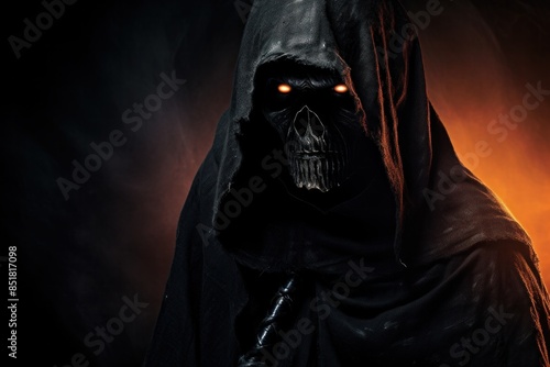 Grim Reaper on dark background, Halloween background, scary, angel of death, death.