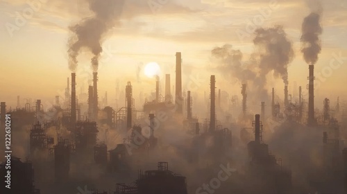 Grimy Industrial District at Sunset with Smoke and Pollution